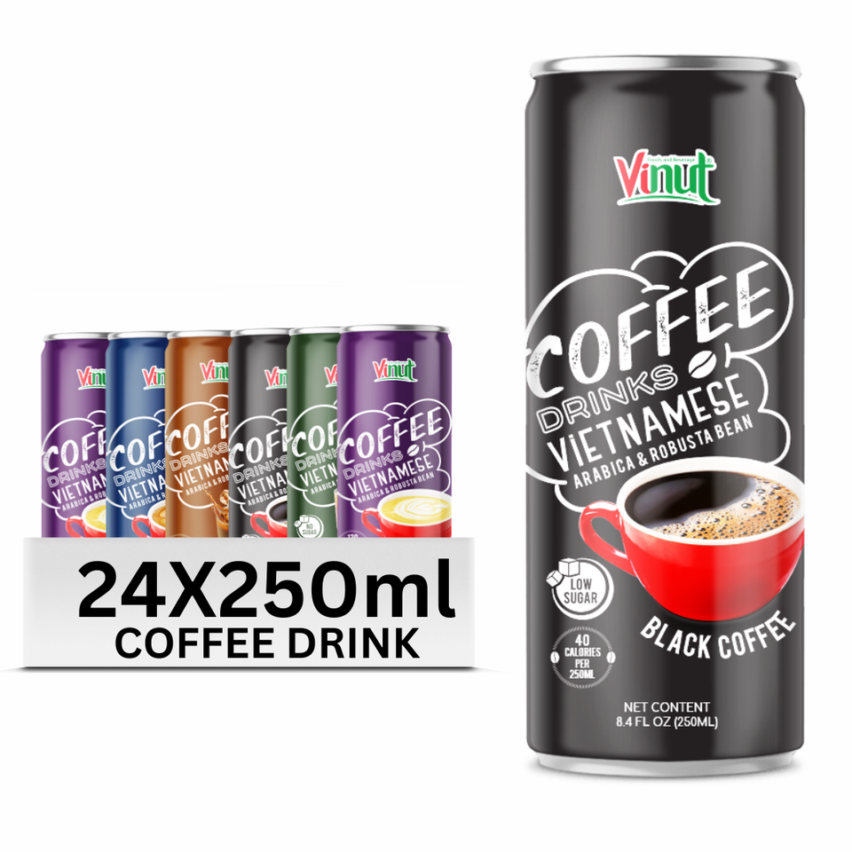 กาแฟ arabica Robusta 250มล. สีดำเครื่องดื่มกาแฟ vinut 24กระป๋องต่อกล่องสามารถผลิตฉลากส่วนตัวไม่มี GMO