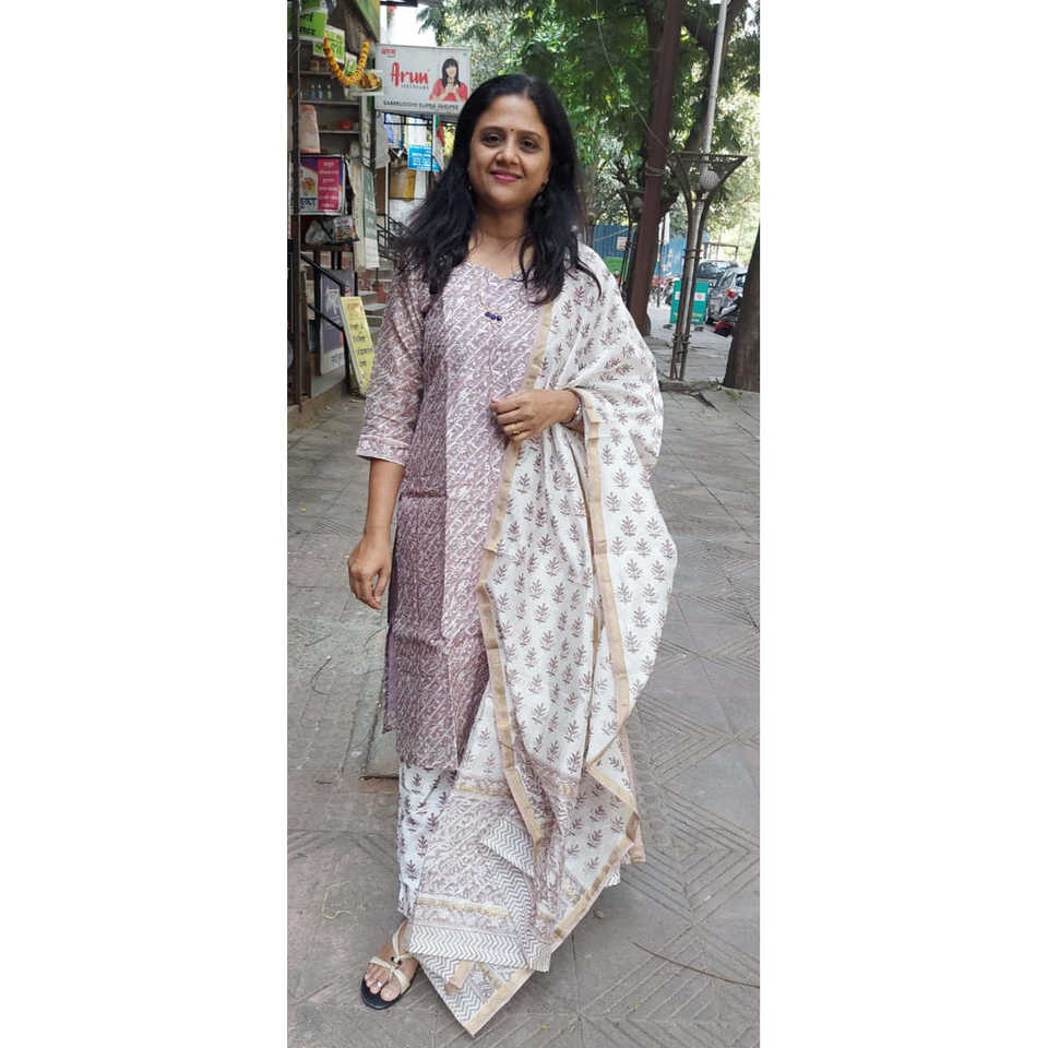 ชุดผ้าฝ้ายพิมพ์ลาย Chanderi บล็อกกาแฟแบบเต็มพร้อม dupatta