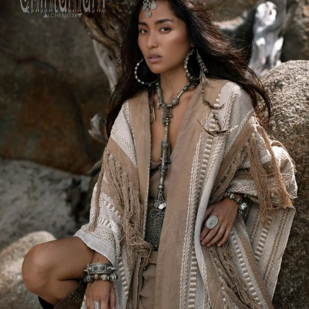 ผ้าคลุมไหล่สไตล์โบฮีเมียนประดับพู่ห้อย ขนาดใหญ่ เหมาะสำหรับงานเทศกาล พิธีต่างๆ สำหรับผู้หญิง สไตล์ยิปซี คิโมโน คาร์ดิแกน ราคาขายส่ง