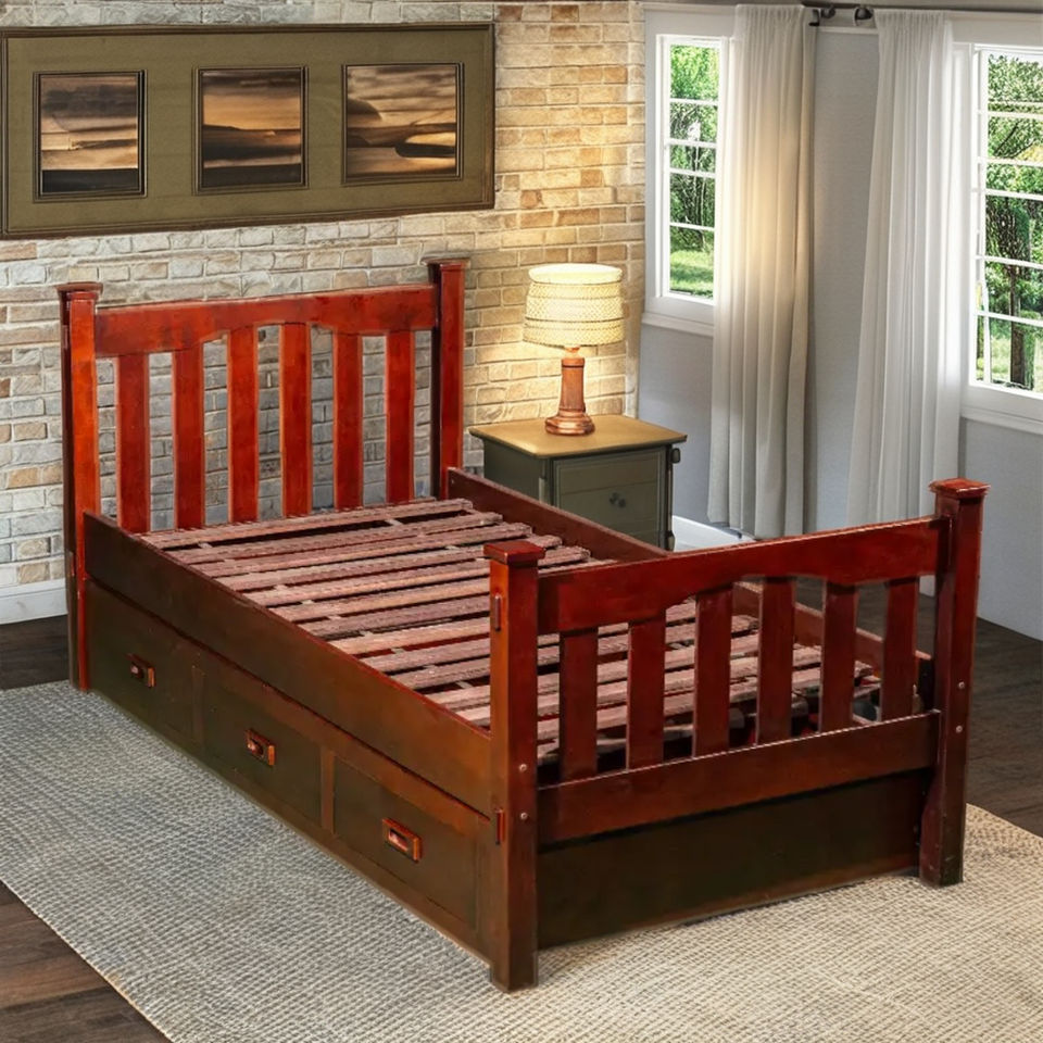 เตียงเดี่ยวไม้บีชสีน้ำตาลกาแฟพร้อมลิ้นชัก3อันไม้เนื้อแข็งดีไซน์แบบดั้งเดิมประหยัดพื้นที่และมีการจัดเก็บ