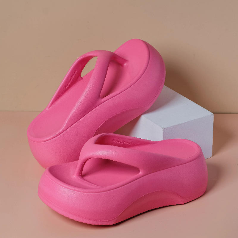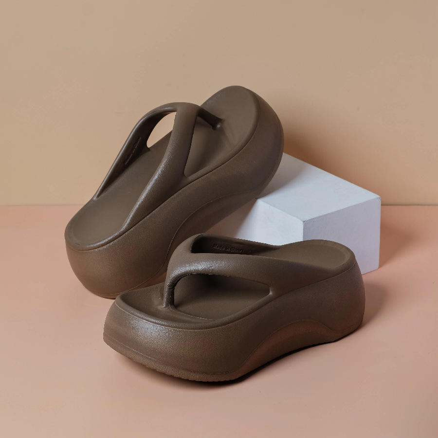 รองเท้าแตะสีกาแฟสำหรับผู้หญิง พื้นหนา ส้นสูง 7 ซม. รองเท้าแตะชายหาดฤดูร้อน มีสไตล์ ทันสมัย ใส่ได้ทุกฤดู