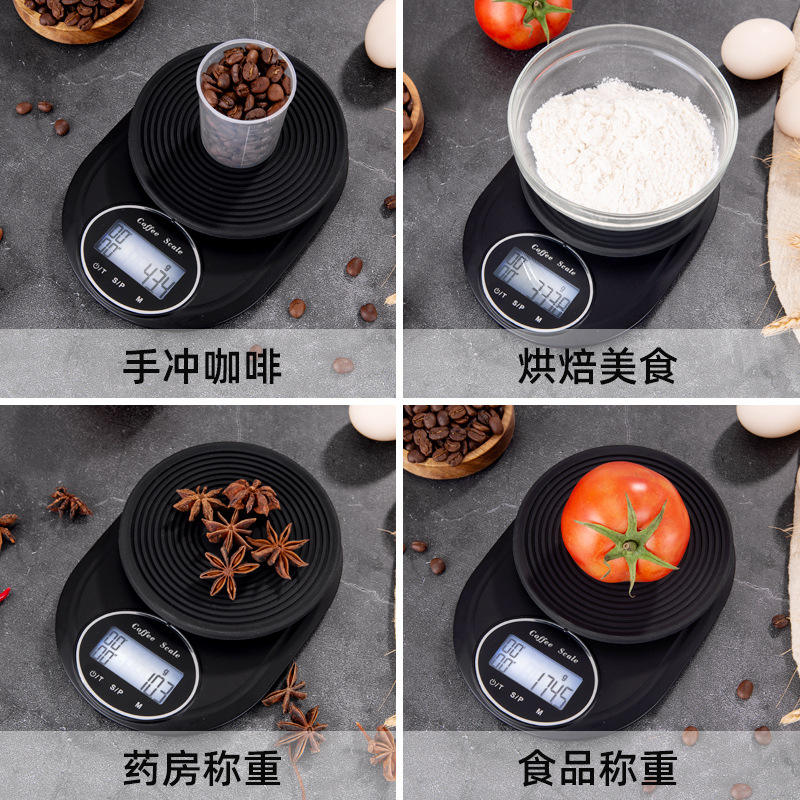 เครื่องชั่งกาแฟ เครื่องชั่งดิจิตอลในครัว ความจุ 10 กก. ความแม่นยำ 0.1 กรัม ฟังก์ชั่นจับเวลา รูปทรงกลม ใช้พลังงานจากแบตเตอรี่ การวัดที่แม่นยำ