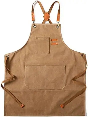 ผ้ากันเปื้อนผ้าใบแขนกุดสำหรับผู้หญิงและผู้ชายผ้ากันเปื้อนสำหรับร้านกาแฟ