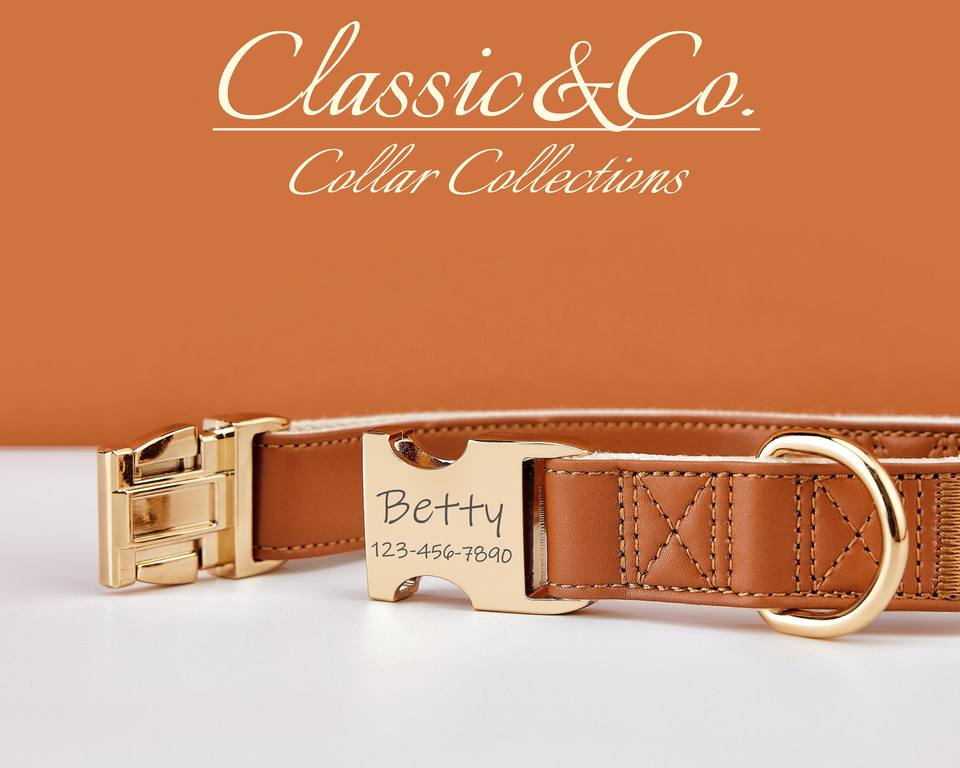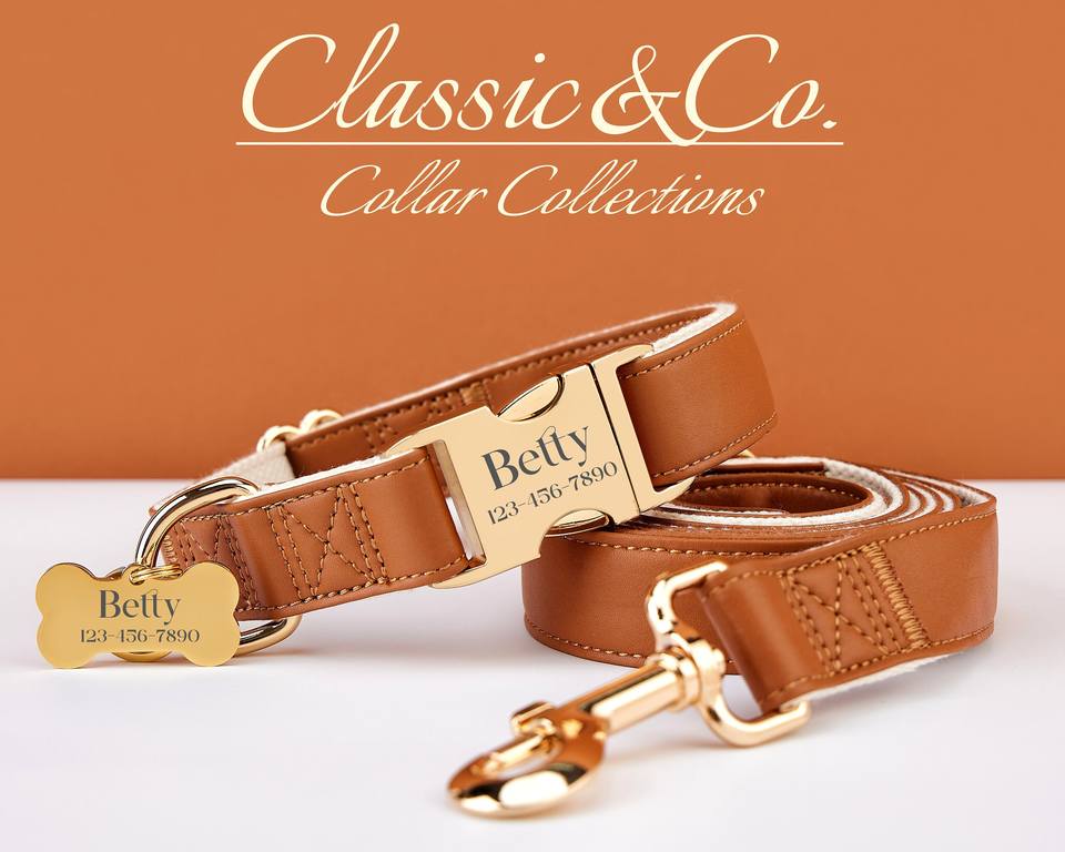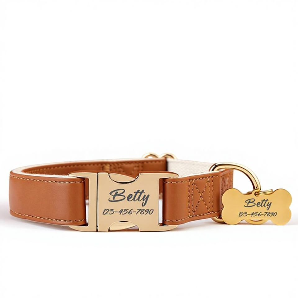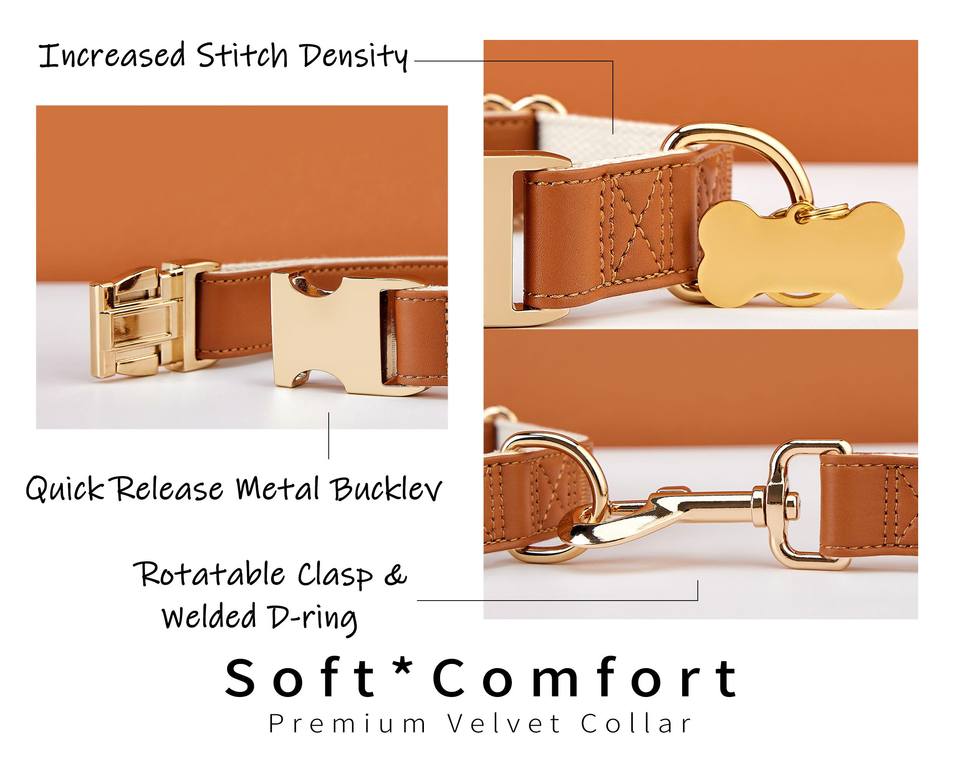 Waterproof PU Leather Dog Collar & Leash Set Solid Design Engraved Buckle Free Personalized Name Tag Wedding Puppy Accessories