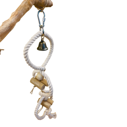 ที่นั่งและของเล่นสำหรับนกทำจากไม้กาแฟ ของเล่นธรรมชาติทนทานสำหรับนกค็อกคาเทล คอนัวร์ และเลิฟเบิร์ด