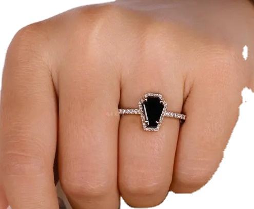 Coffin Cut Black Moissanite Diamond Ring Beautiful Customized Engagement Ring & Other Diamond Jewelry