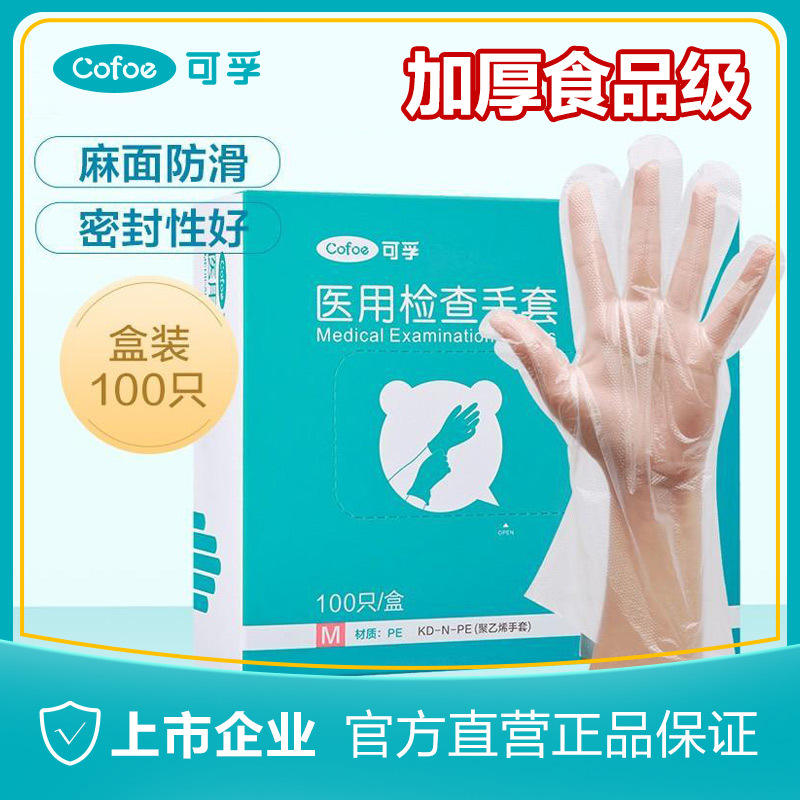 ถุงมือตรวจโรค Cofoe วัสดุ PE ไม่ผ่านการฆ่าเชื้อ ปราศจากแป้ง ปราศจากน้ำยาง ขนาด M บรรจุ 100 ชิ้นต่อกล่อง สำหรับใช้ในกระบวนการผลิตอาหาร