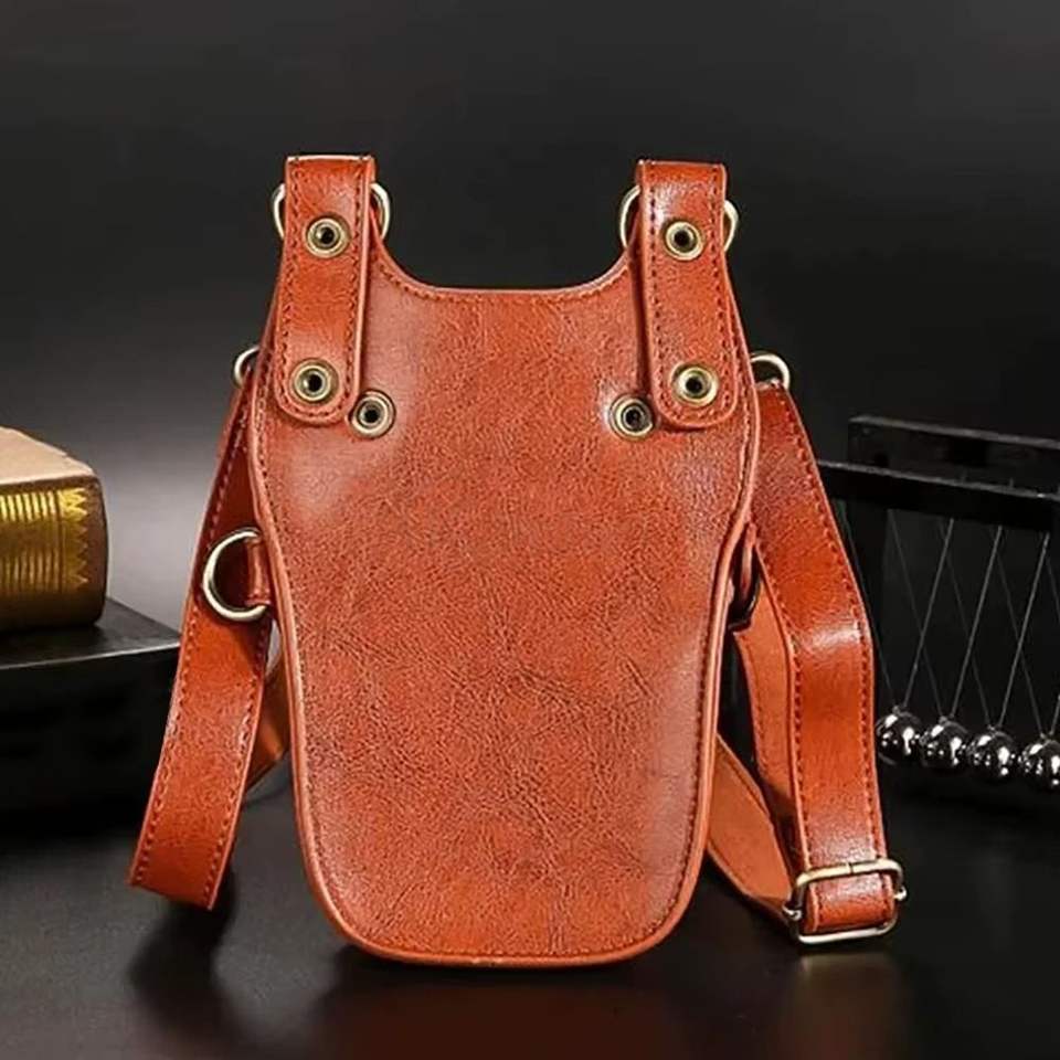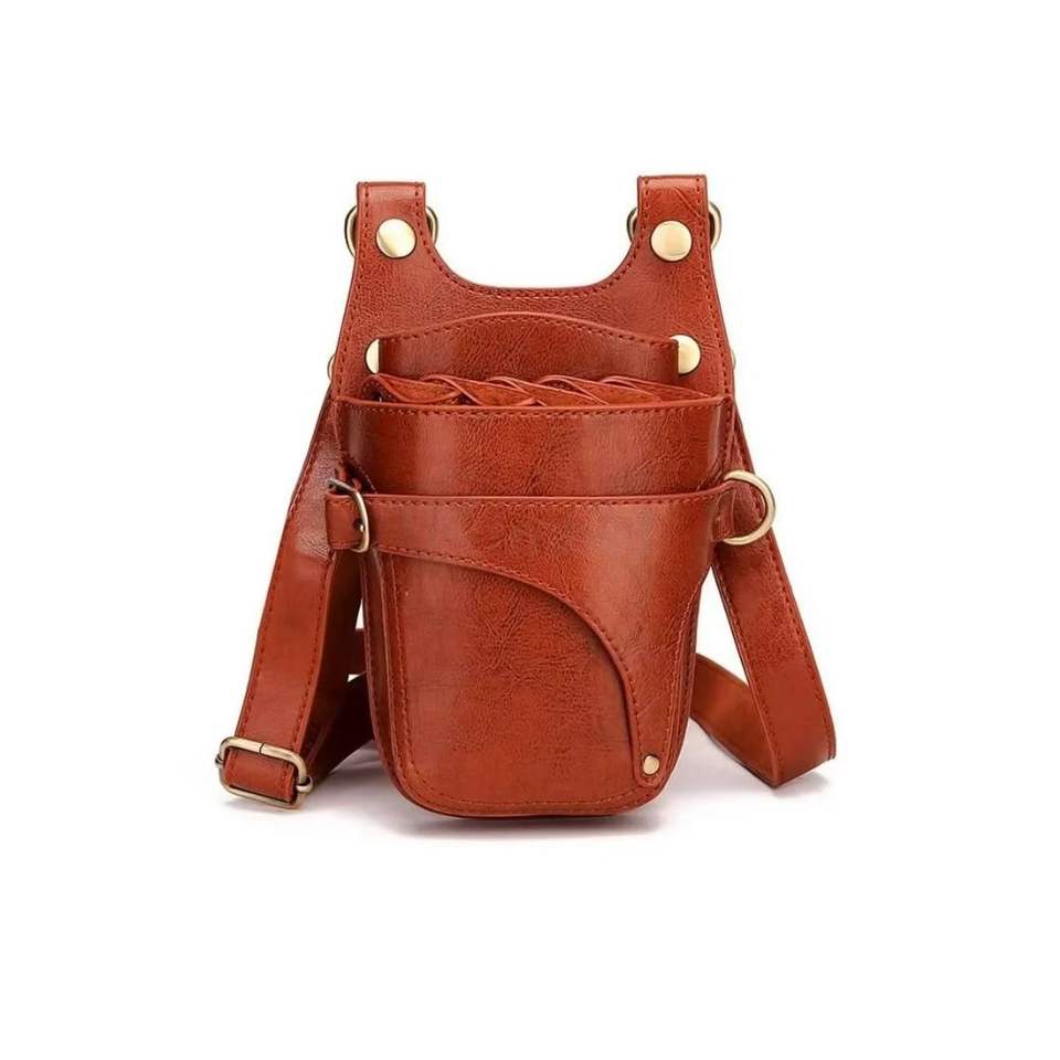 กระเป๋าใส่กรรไกรหนัง Cognac สำหรับช่างตัดผมมืออาชีพ ทรงโค้งมน พร้อมสายสะพายไหล่ รับผลิตแบบ OEM ODM