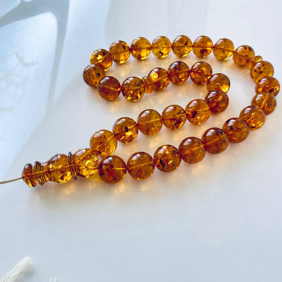 ลูกปัดอำพันอิสลามคอนญักธรรมชาติ Baltic 18มม