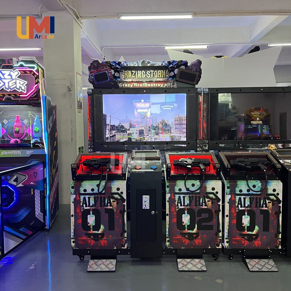 เครื่องเกมยิงปืนในร่ม Razing Storm พร้อมปืนจำลองแบบ Light Gun หน้าจอ HD 55 นิ้ว โครงโลหะ รับประกัน 1 ปี สำหรับเด็กและผู้ใหญ่