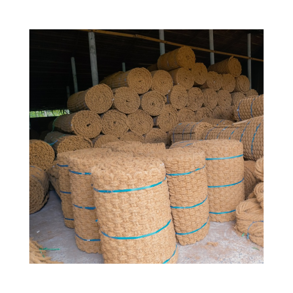 แผ่นใยมะพร้าวตาข่ายพร้อมปอกระเจาเสริมแรงสำหรับการควบคุมการกัดเซาะบนทางลาดและธนาคารม้วนภูมิทัศน์ที่ทนทาน