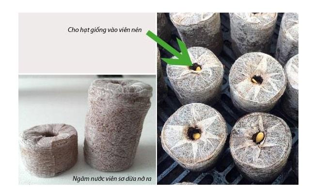 เม็ดมะพร้าวแบบอัดเม็ดทำจากใยมะพร้าวแบบเวียดนามน้ำหนักเบาสำหรับการปลูกในสวนแบบอัด