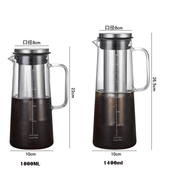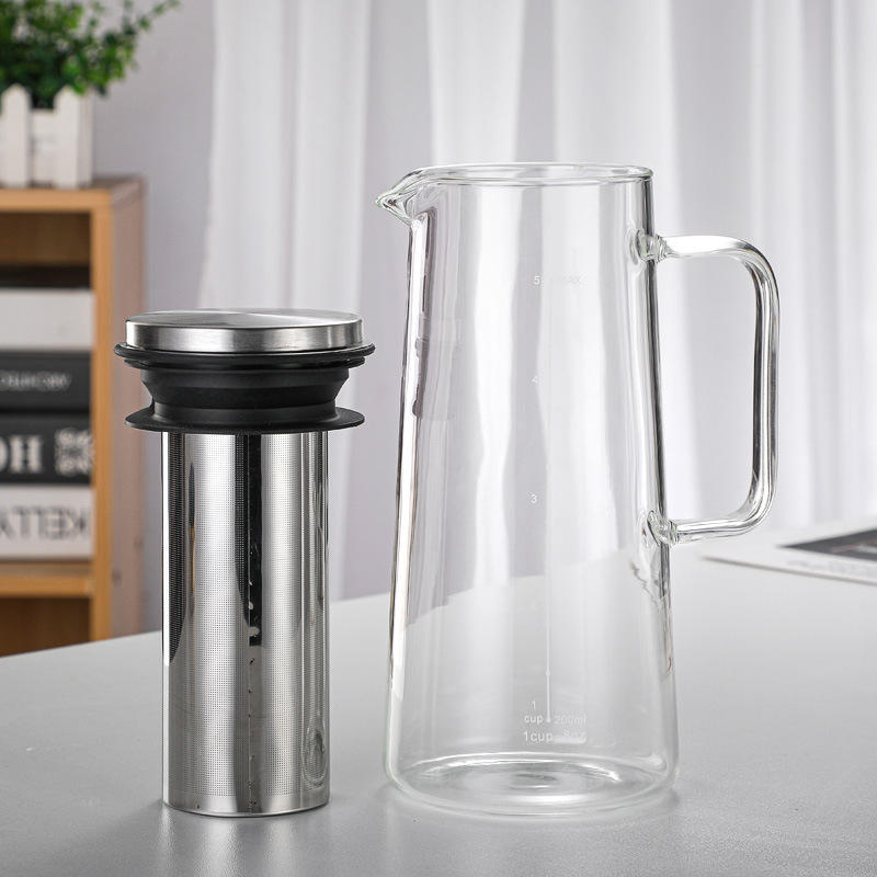 เครื่องชงชาเย็นแบบโคลด์บริว ทำจากแก้วบอโรซิลิเกตทนความร้อน พร้อมตัวกรองแบบถอดได้ ความจุ 1000 มล./1600 มล. ปราศจากสารตะกั่วและสาร BPA