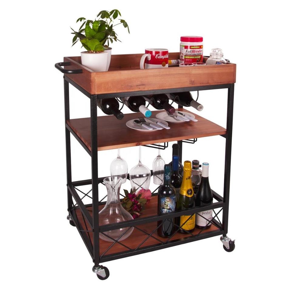 รถเข็นเสิร์ฟไวน์แดงเย็นสำหรับร้านอาหารและเฟอร์นิเจอร์ครัว