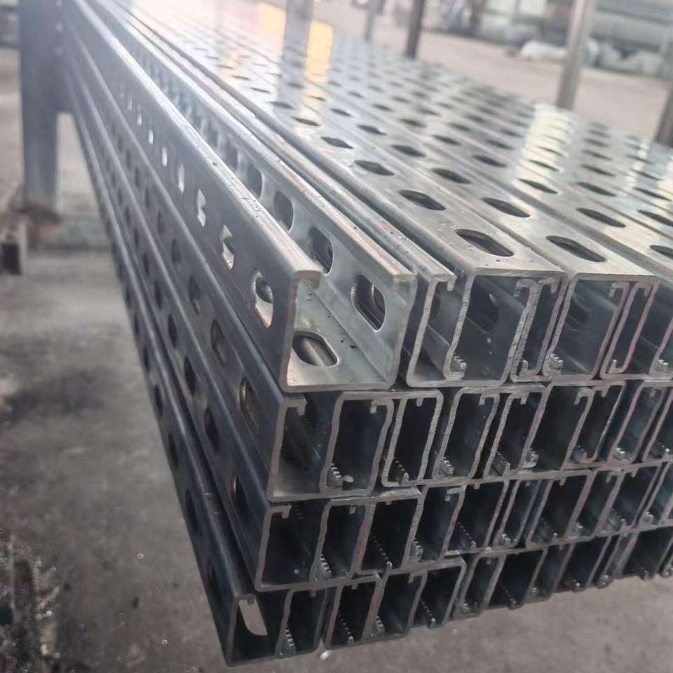เหล็กชุบสังกะสีแบบจุ่มร้อนชนิดหนาพิเศษ รีดเย็น ขึ้นรูปเป็นรางซี พร้อมร่องแบบ Unistrut และรูเจาะตามสั่ง ราคา