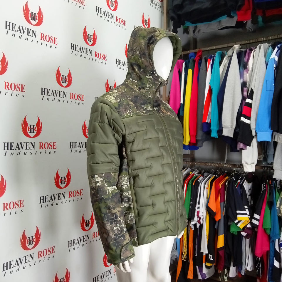 แจ็กเก็ตล่าสัตว์กันหนาวหุ้มฉนวนประสิทธิภาพสูงเสื้อแจ็คเก็ตนักล่าขนเป็ดกลางแจ้งลายพรางมีสไตล์