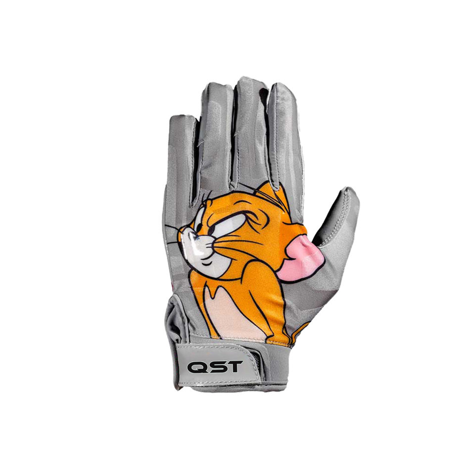 ถุงมือเล่นกีฬาเครื่องรับสัญญาณแบบเต็มนิ้วถุงมือกีฬาพิมพ์ลายซิลิโคนสำหรับใส่ทำงานอเมริกันฟุตบอล
