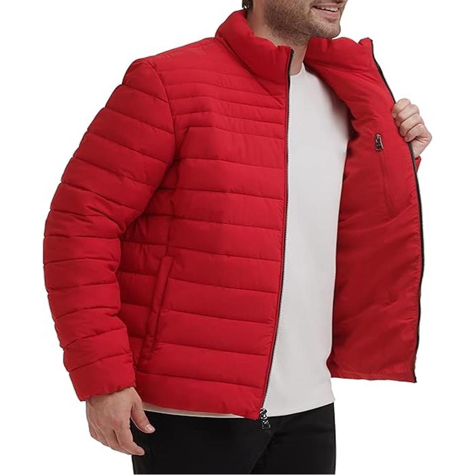 เสื้อแจ็คเก็ตพัฟเฟอร์ผู้ชายสำหรับฤดูหนาว ผ้าแคนวาสน้ำหนักเบา เงางาม ระบายอากาศได้ดี ซิปหน้า คอตั้ง