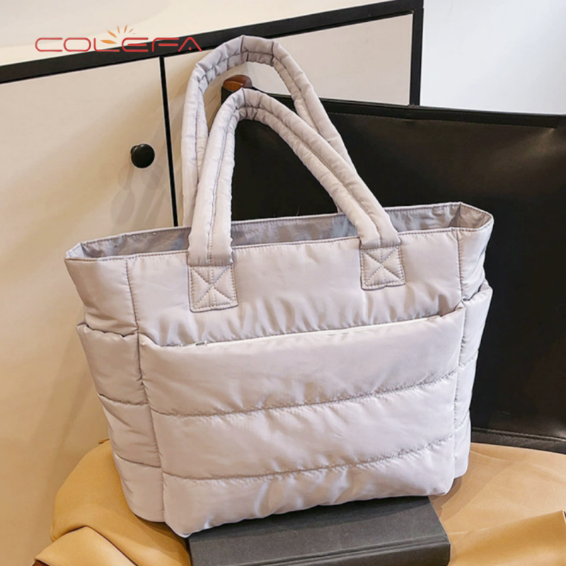 กระเป๋าโท้ท Colefa สีเทาอ่อน นุ่มฟู หรูหรา คุณภาพเยี่ยม ขายดี สามารถสั่งทำโลโก้ส่วนตัวได้ กระเป๋าโท้ทสีชมพูฟูฟ่อง พร้อมโลโก้ของฉัน
