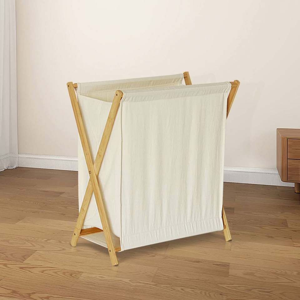 ตะกร้าผ้าไม้ไผ่พับเก็บได้ตะกร้าใส่เสื้อผ้าพับได้พร้อมผ้าลินินผ้าใบ