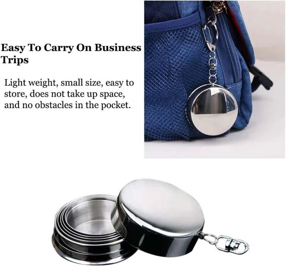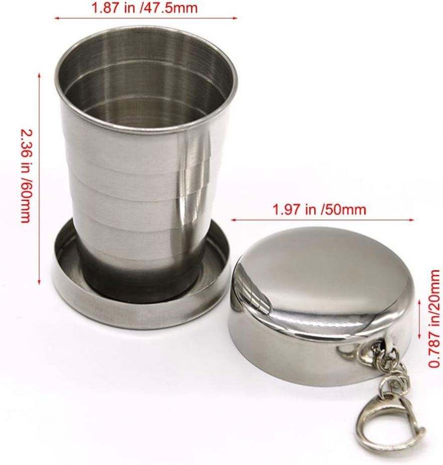 แก้วพับได้ สแตนเลส พกพาสะดวก แก้วโลหะแบบยืดหดได้ พร้อมพวงกุญแจ ขนาด 60 มล. 150 มล. 250 มล.