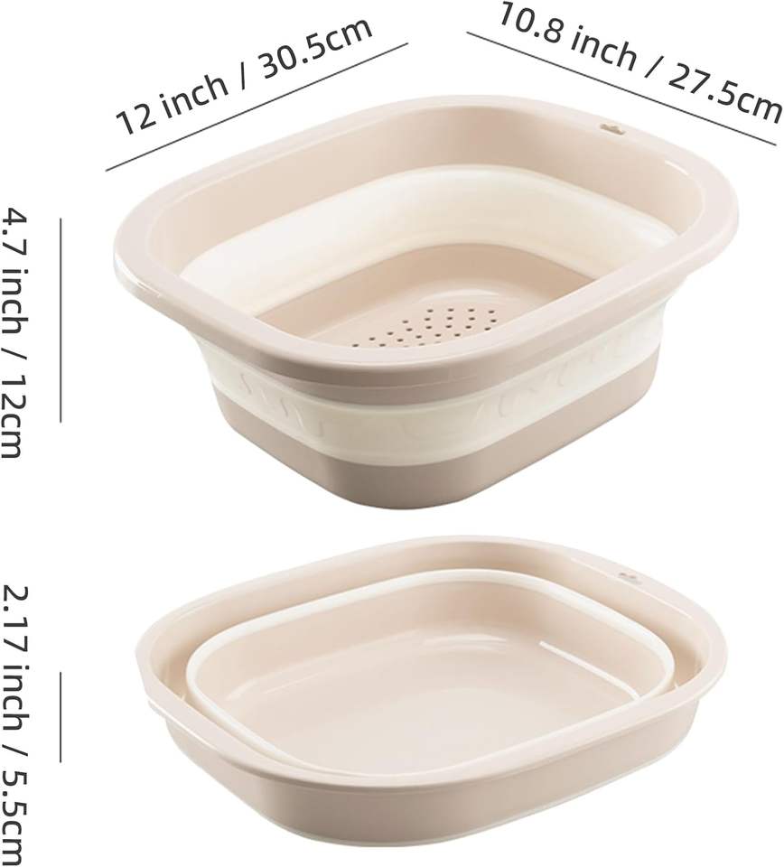Collapsible Dish Basin with Colander, Foldable 2-in-1 Dish Pan and Strainer Set with Drain Holes, Portable Wash Basin Fo Sink