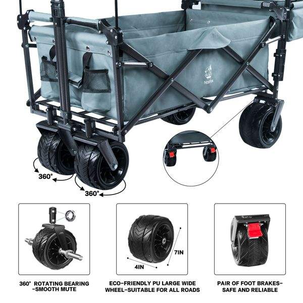 Collapsible Grey Wagon Cart with Large All-Terrain Wheels & Brake Adjustable Handles Removable Canopy & Cooler Bag-for Camping