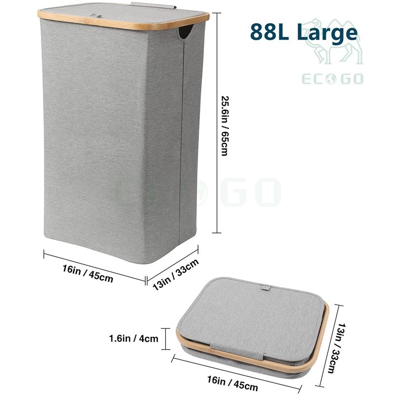 ตะกร้าไม้ไผ่ธรรมชาติพับได้พร้อมฝาปิดตะกร้าใส่เสื้อผ้ากันน้ำได้