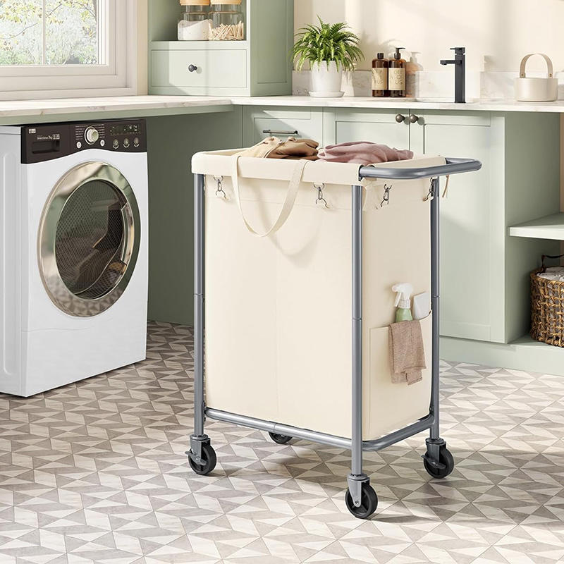 ตะกร้าซักผ้าแบบพับได้พร้อมถุงซักที่ถอดออกได้ของใช้ในครัวเรือนสำหรับอาหารและเครื่องใช้บนโต๊ะอาหารล้อรวมอยู่ด้วย