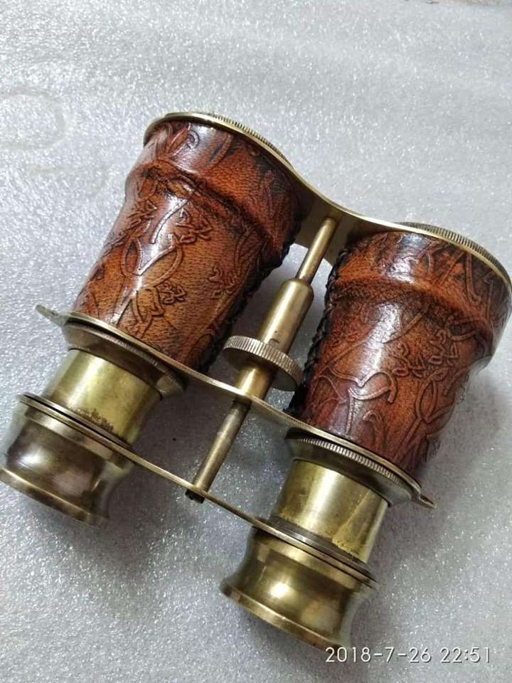 กล้องส่องทางไกลทองเหลืองโบราณสำหรับสะสม,กล้องส่องทางไกลพร้อมกล่องหนัง