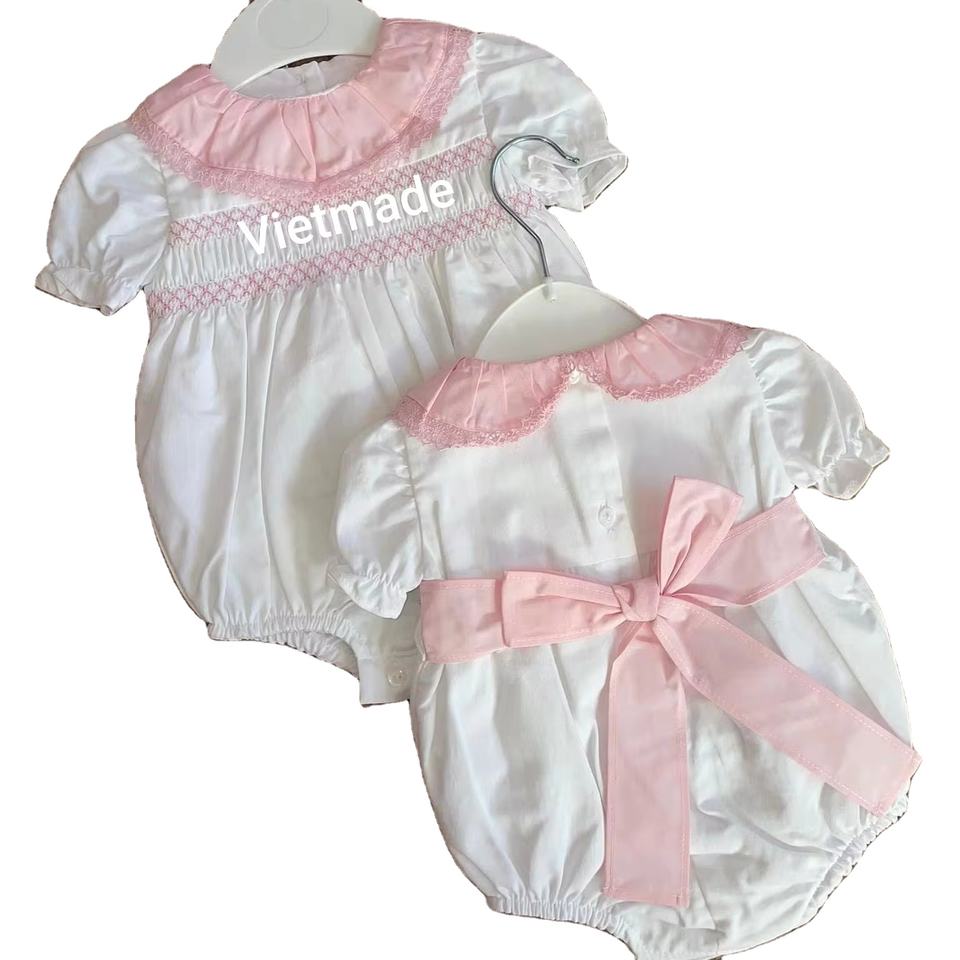 คอลเลกชัน2024เด็กทารกหญิงชุดรอมเปอร์ผ้าฝ้ายลายสก๊อตสีชมพูขาวสำหรับฤดูร้อน