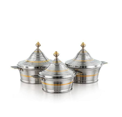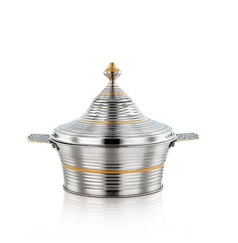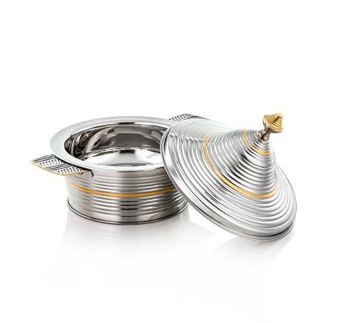 คอลเลกชันสแตนเลสกระติกน้ําร้อนเงินและทองเครื่องครัวกระทะเสิร์ฟอาหารตกแต่งงานแต่งงานอาหารจาน
