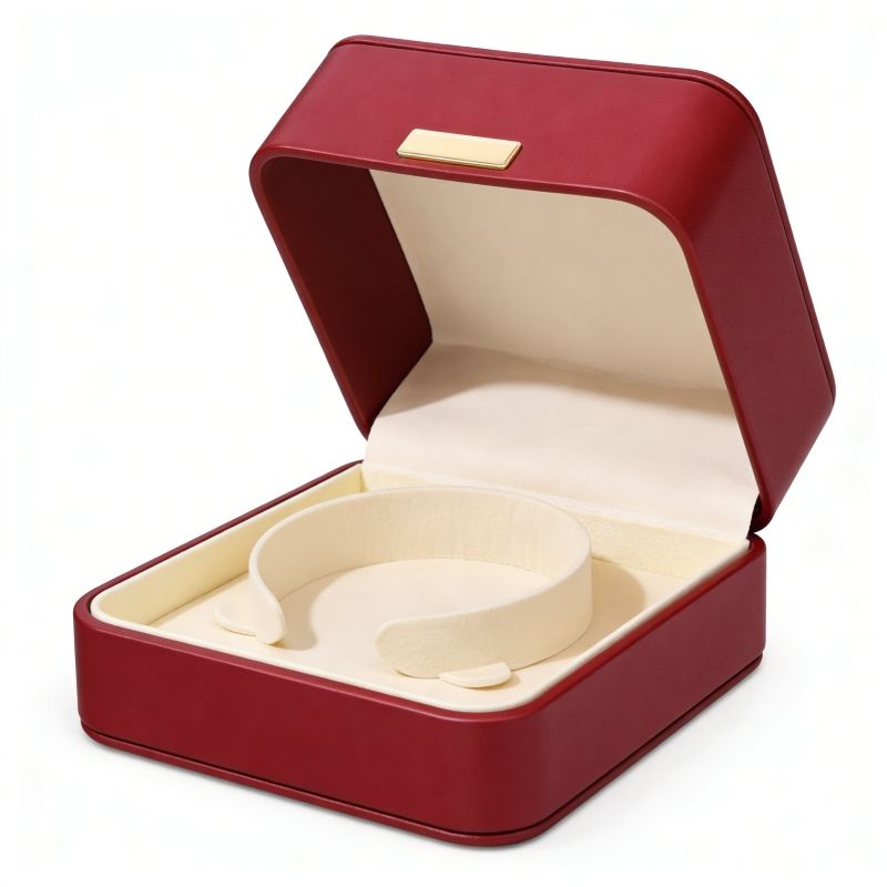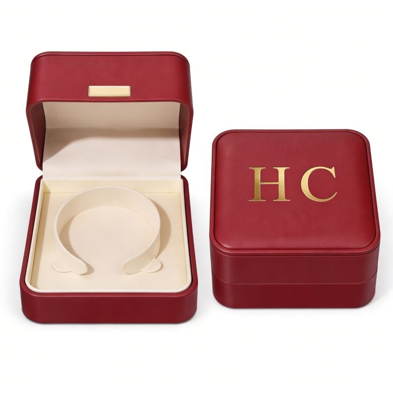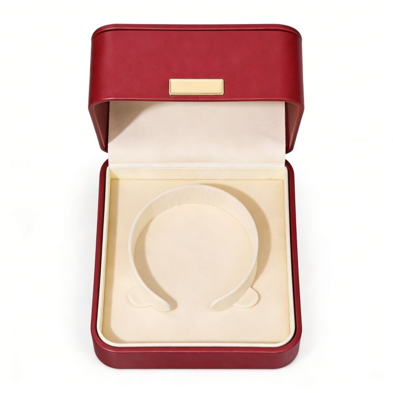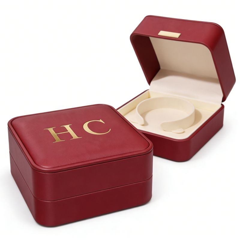 กล่องใส่สร้อยข้อมือแบบมีฝาปิดสั่งทำพิเศษ วัสดุหนัง PU คุณภาพสูง บุด้วยกำมะหยี่ ปั๊มฟอยล์โลโก้ตามสั่ง ราคาโรงงาน
