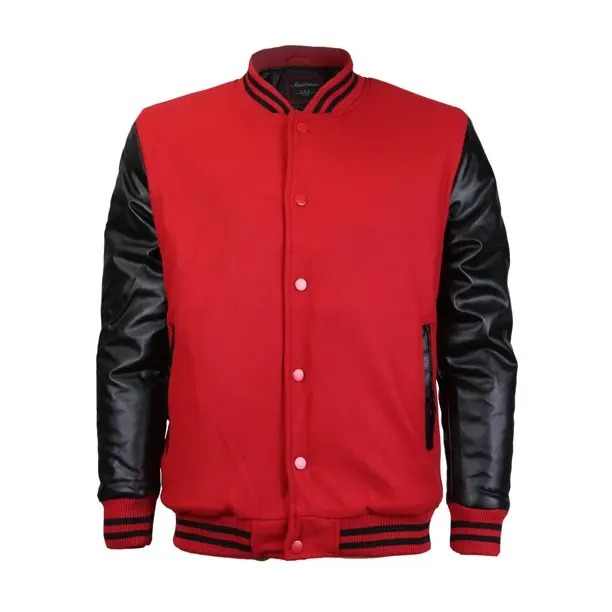 College Baseball Jacket Custom Logo Varsity Style Leather Sleeves Embroidered varsity jackets a polyester and cotton blend