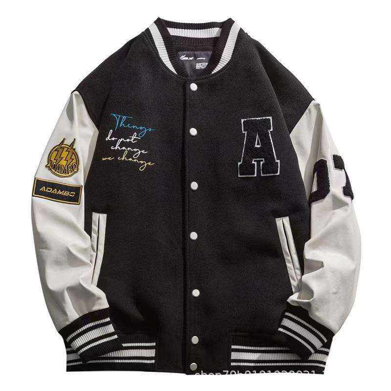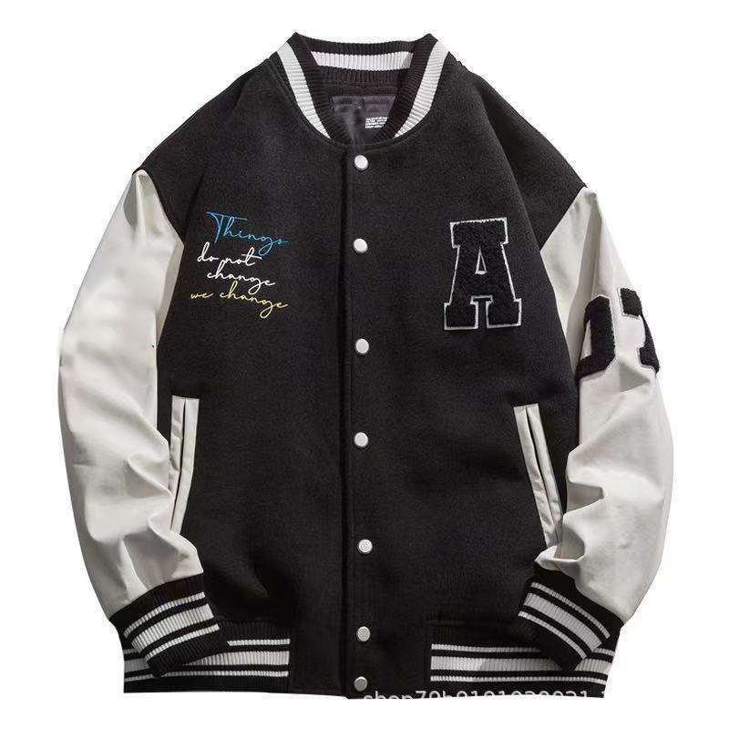 เสื้อแจ็กเก็ตเบสบอลวิทยาลัยสำหรับผู้ชายเสื้อแจ็กเก็ตบอมเบอร์แจ็คเก็ตแขนหนังมีตัวอักษรเลตเทอร์แมนขายส่ง