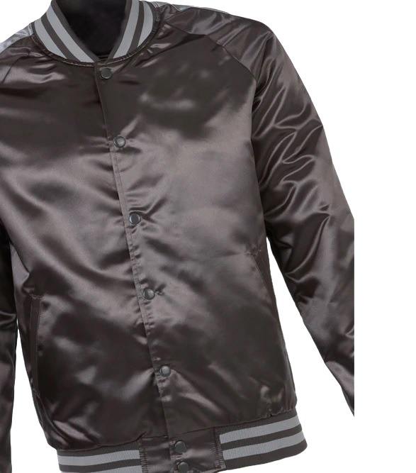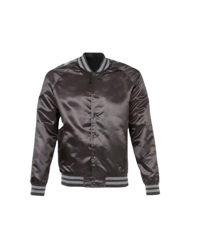 แจ็กเก็ตผ้าซาตินสำหรับผู้ชายเสื้อแจ็กเก็ตบอมเบอร์ทีมเบสบอลกันลมผ้าซาตินงานปักสำหรับวิทยาลัยขายส่งจำนวนมาก