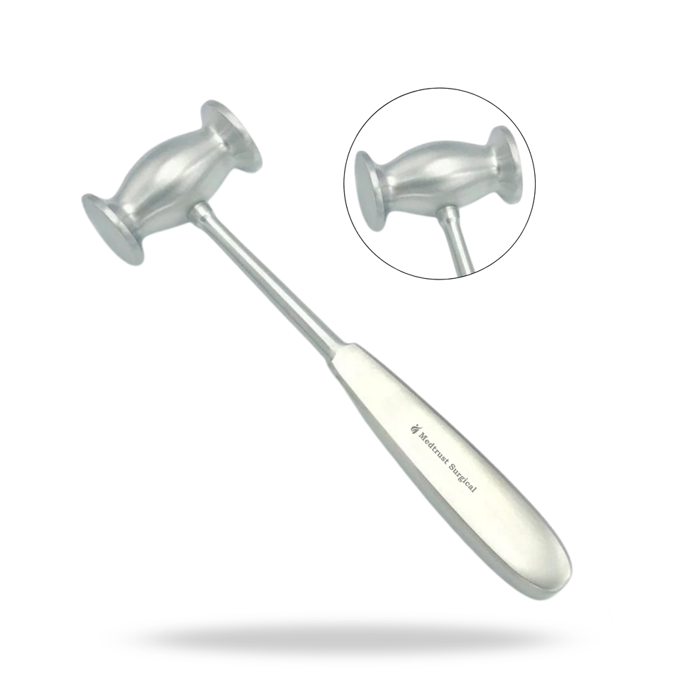 Specification:Material Surgical grade stainless steel, Overall length 8 inch 20 cm, Head diameter 30 mm, Weight 10 oz, Handle Ergonomic non slip grip, Reusable autoclavable, Finish Mirror or satin stainless steel