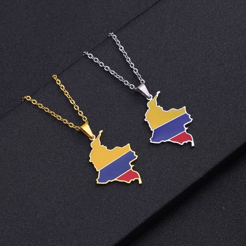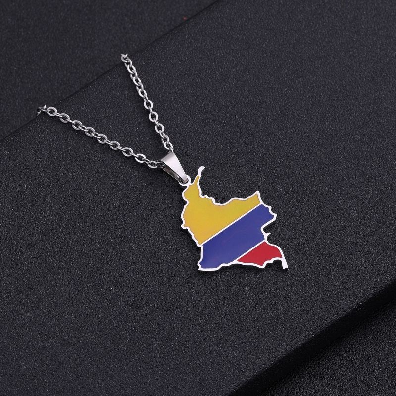 สร้อยคอจี้รูปแผนที่ประเทศโคลอมเบีย สีเงิน/สีทอง สำหรับผู้หญิงและเด็กผู้หญิง เครื่องประดับโคลอมเบีย สร้อยคอรูปแผนที่ประเทศโคลอมเบีย