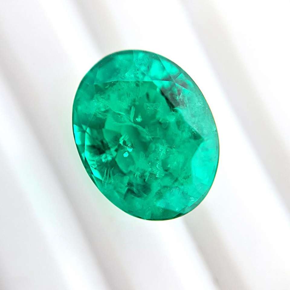 พลอยมรกตทรงรีสังเคราะห์สไตล์โคลอมเบีย ขนาด 9.70x12.30 มม. น้ำหนัก 5.34 กะรัต สีเขียวเดี่ยว สำหรับทำเครื่องประดับ DIY