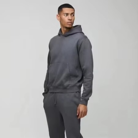 ชุดเซ็ตฮู้ดดี้และกางเกงวอร์มทรงบ็อกซี่สีบล็อคสำหรับผู้ชาย สไตล์สตรีทแวร์ โอเวอร์ไซส์ ผ้าฟลีซหนานุ่ม 100% โพลีเอสเตอร์ พิมพ์ลาย