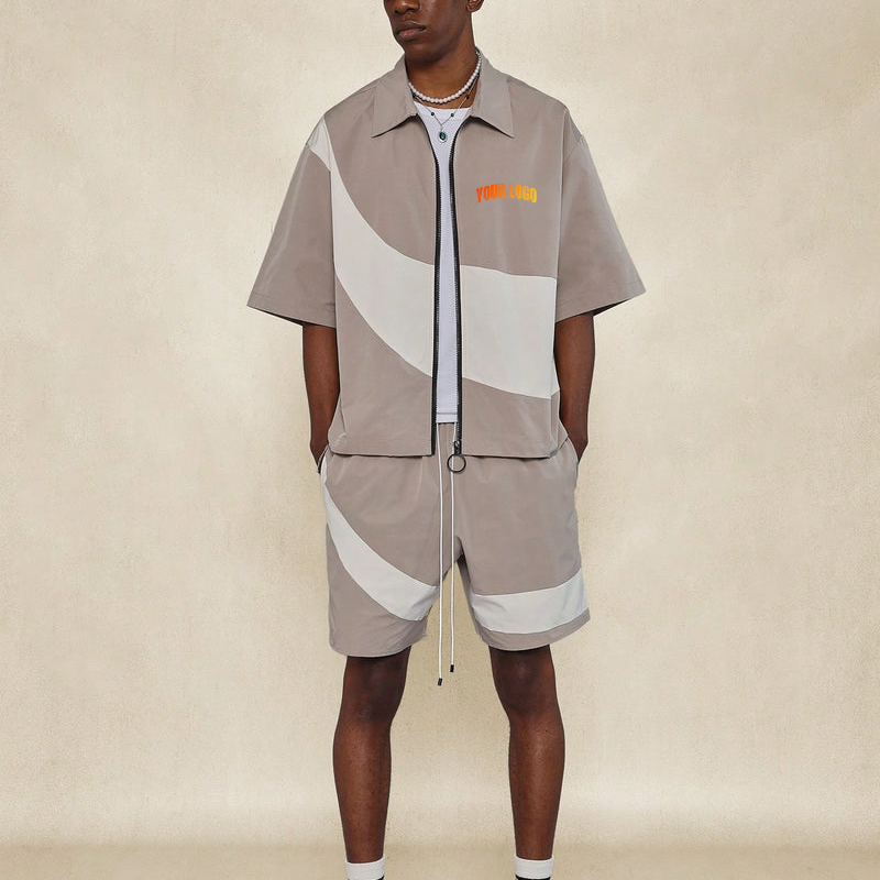 ชุดวอร์มกันลมสองชิ้นพิมพ์ลายบล็อกสี ระบายอากาศได้ดี เป็นมิตรกับสิ่งแวดล้อม พร้อมซิปสะท้อนแสง ผลิตจากผ้าฝ้าย 100%