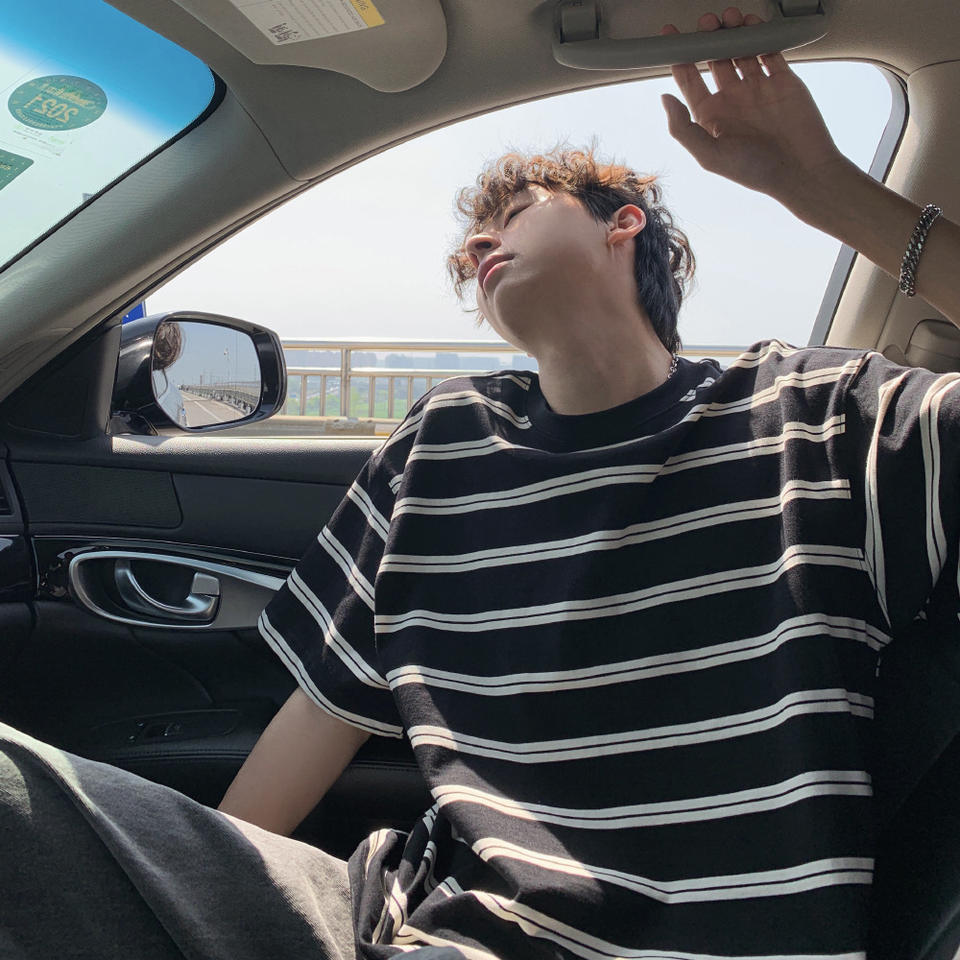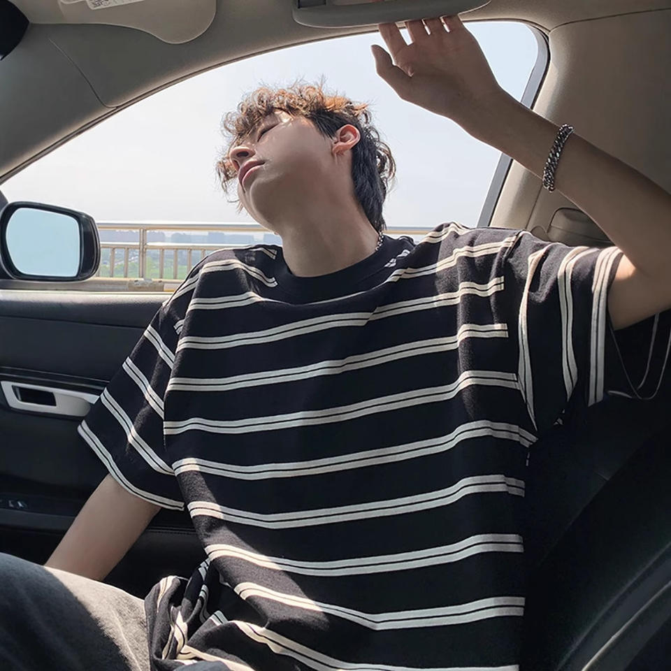 เสื้อยืดแขนสั้นผ้าผสมใยสังเคราะห์ลายทางสีสันสดใสสไตล์ญี่ปุ่นย้อนยุคสำหรับผู้ชาย วัยรุ่น ใส่ได้หลากหลายโอกาส