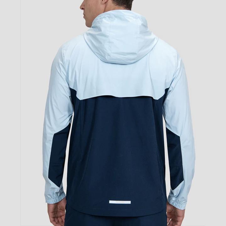 ชุดวอร์มผ้าไนลอนกันลมสองชิ้นมีฮู้ดแบบมีซิปเต็มชุดเสื้อแจ็คเก็ตและกางเกงขาสั้นสำหรับเล่นกีฬา