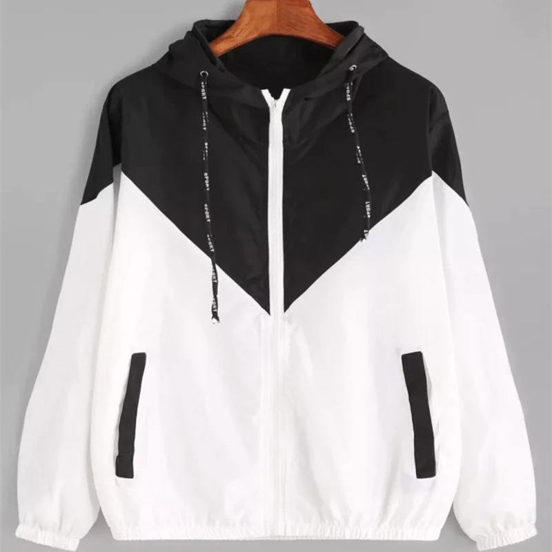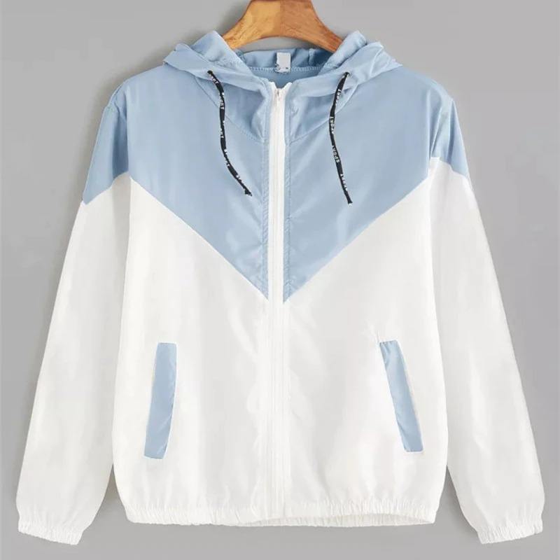 แจ็กเก็ตกีฬากันลมสีบล็อกพร้อมฮู้ดแบบรูดซิปและผ้าแคนวาสมีกระเป๋าที่ใช้งานได้จริง