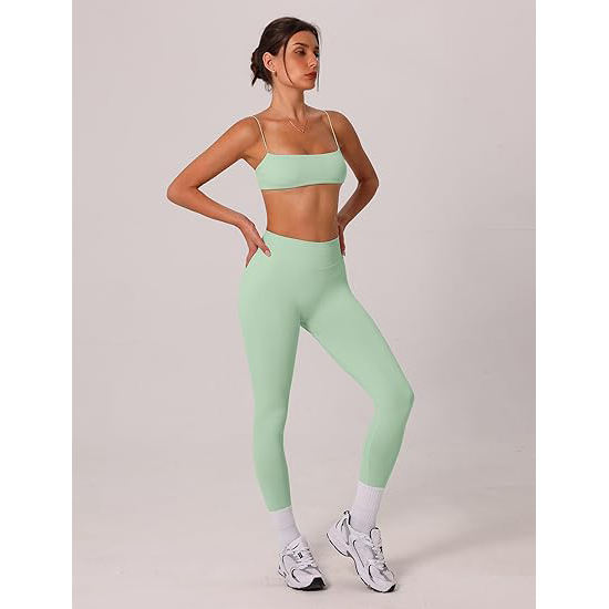 ชุดโยคะสีบล็อกสำหรับผู้หญิง ลายไล่สีแบบออมเบร เสื้อชั้นในกีฬา กางเกงเลกกิ้งเอวสูง ผ้าไนลอนผสมสแปนเด็กซ์