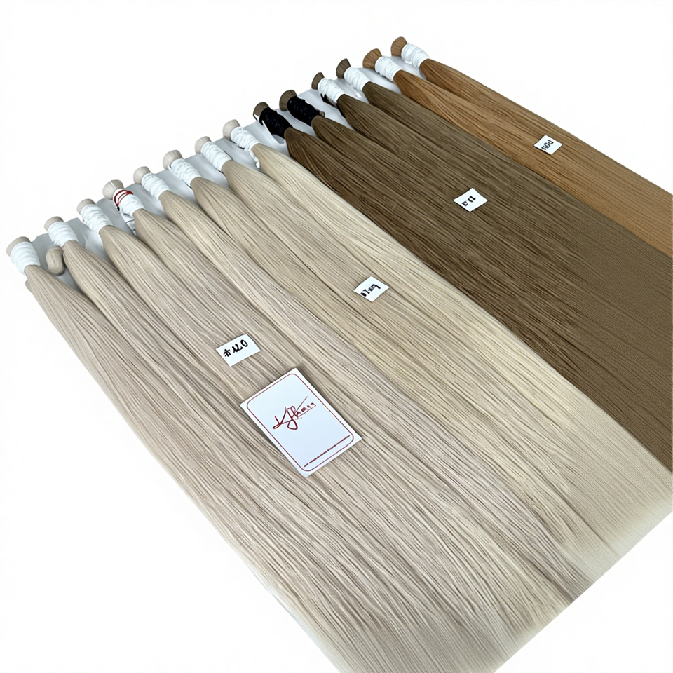 ผมต่อแบบเวอร์จินเรมี่สีธรรมชาติ แบบเครื่องเย็บสองชั้น พร้อมดัด สำหรับตลาดรัสเซียและยุโรป ผมแท้ 100% ไม่ผ่านการแปรรูป