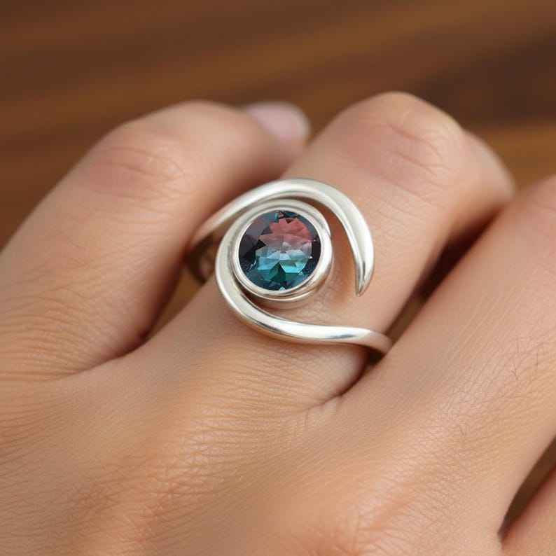 แหวนควอตซ์อเล็กซานไดรต์เปลี่ยนสี เงินแท้ 925 ลายวน ประดับพลอยประจำเดือนมิถุนายน สำหรับผู้หญิง เป็นของขวัญ
