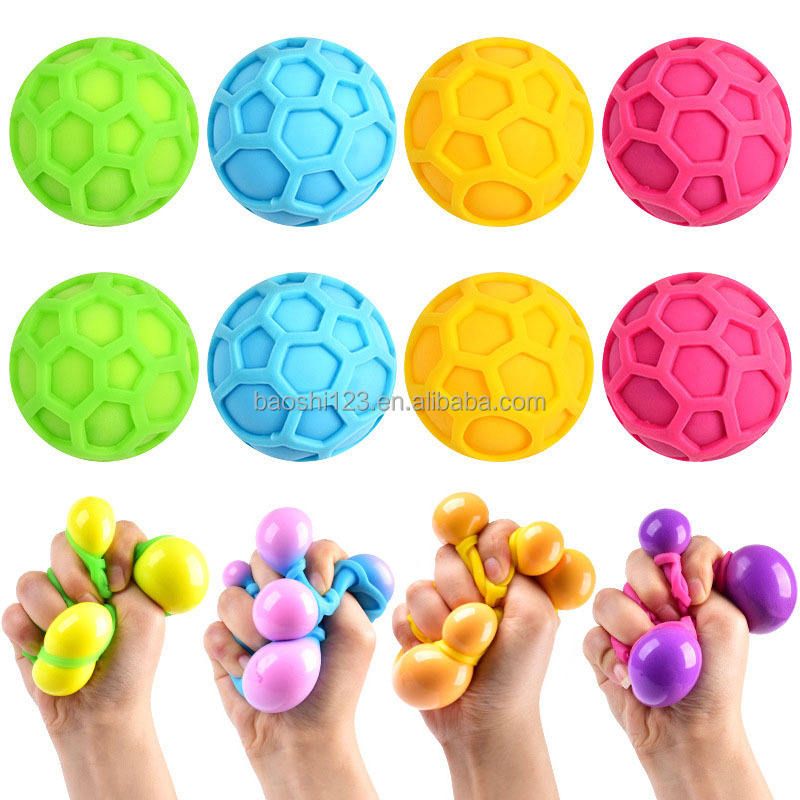 ลูกบอลบีบเปลี่ยนสี TPR แบบยืดหยุ่น พร้อมสไลม์หลากสีสัน บีบแล้วคืนรูปช้าๆ ของเล่นบีบคลายเครียด