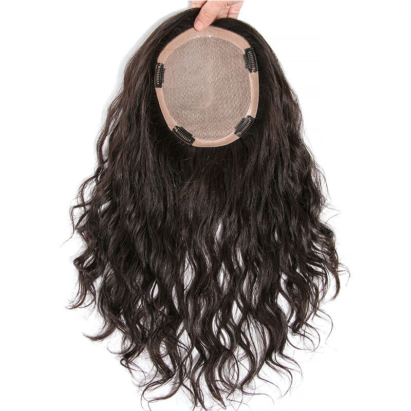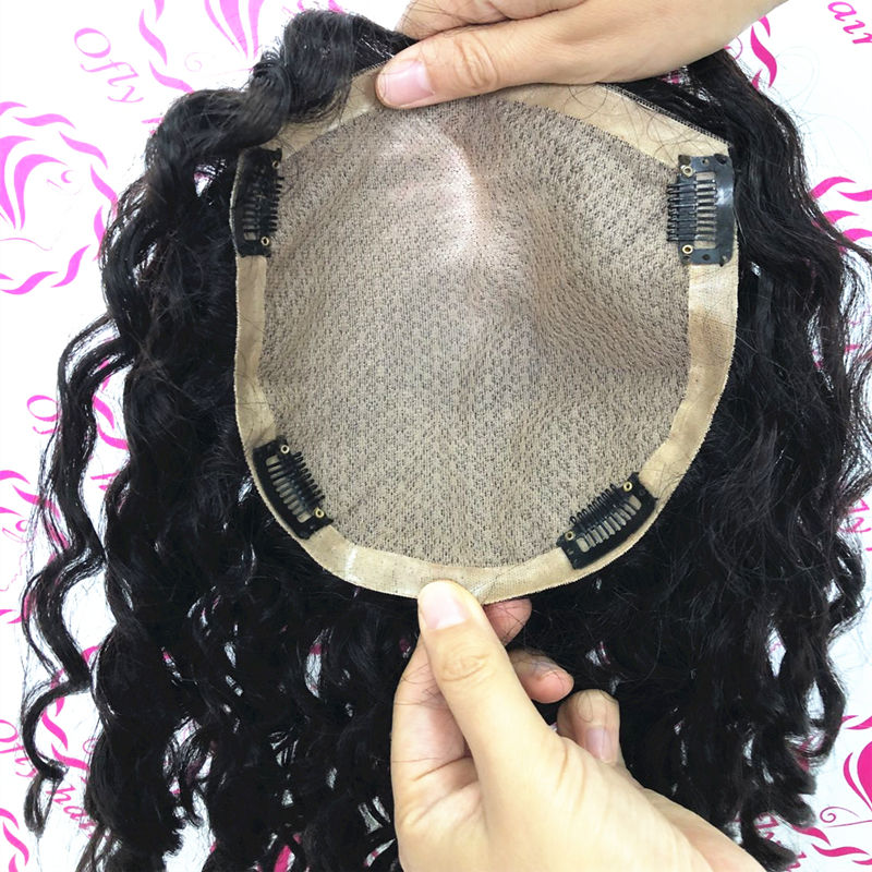 ฐานปิดผมปลอมทำจากผ้าไหมสีดำธรรมชาติสำหรับผู้หญิงผมบราซิล1ชิ้น