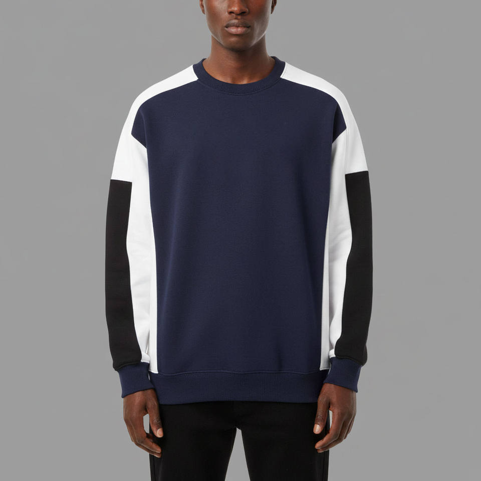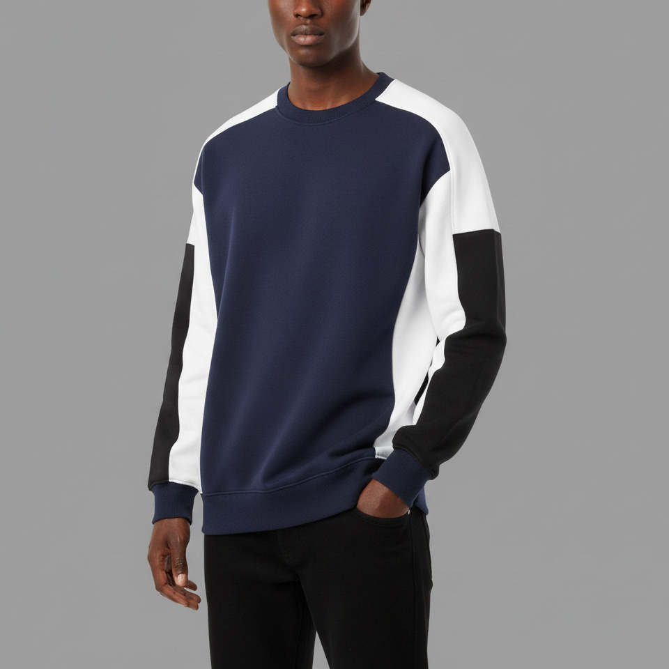 Color block design Pullover O Neck Long Sleeves Sweatshirt Embroidery Logo Winter Fleece Designer Solid Pattern Sweatshirt